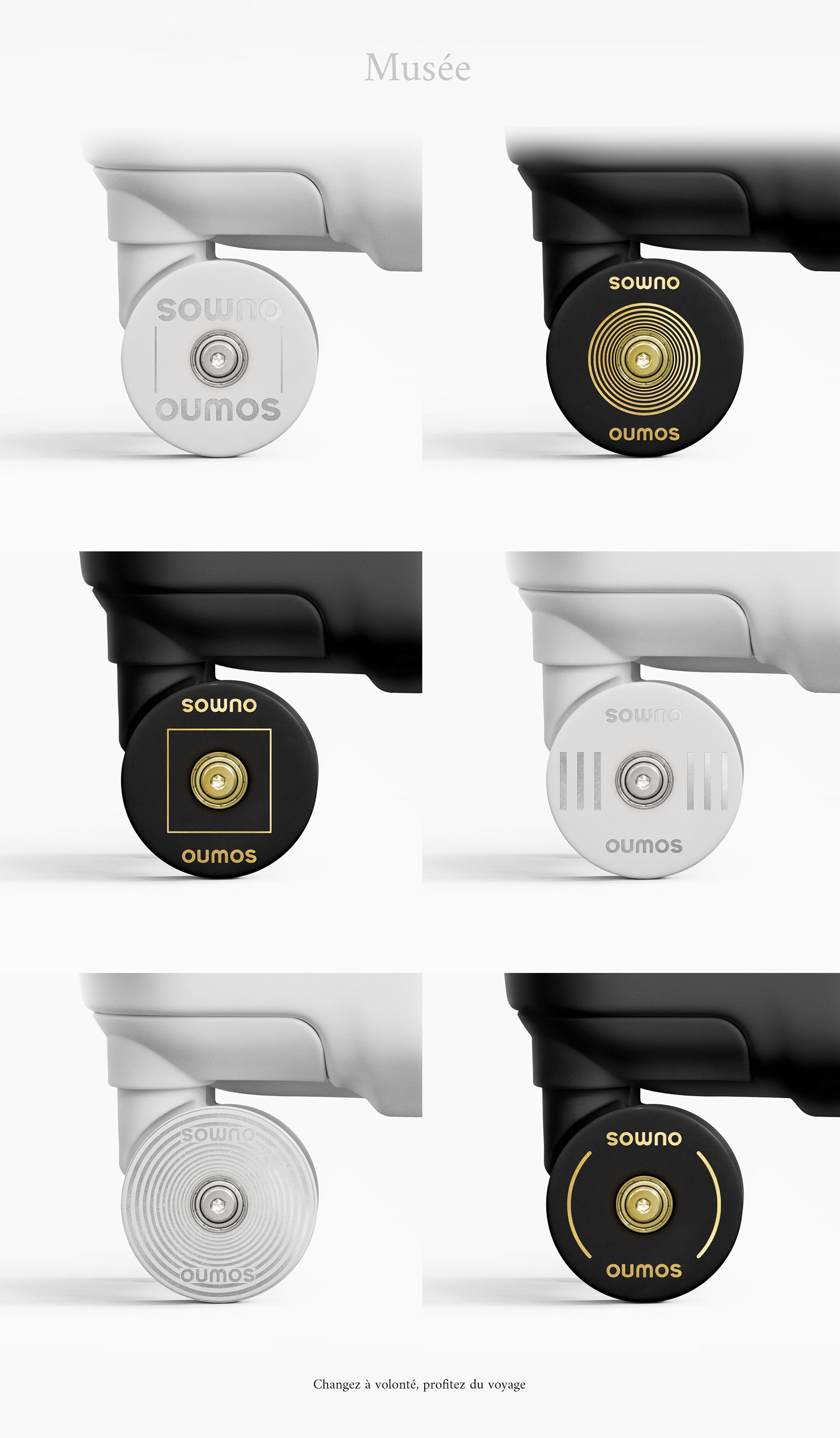 La nouvelle série de valises Musée d'OUMOS présente un design unique qui vous permet de changer facilement la couleur et le motif des roues, révélant ainsi votre style personnel. Que vous préfériez des couleurs vives ou des motifs uniques, les valises OUMOS répondent à vos besoins, offrant à votre équipement de voyage une apparence fraîche et nouvelle.